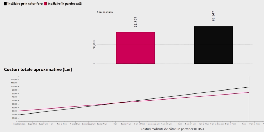 De exemplu, pentru o casă cu o suprafață de aproximativ 130 mp încălzirea prin pardoseală devine mai economică după numai 3 ani. Pentru case cu suprafața mai mare, amortizarea investiției în încălzirea prin pardoseală se face și mai repede.